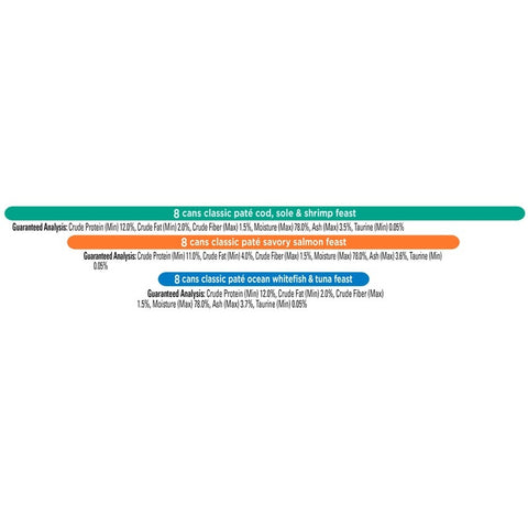 Bring her a taste of the best life has to offer when you serve your cat a selection from the Purina Fancy Feast Sliced Poultry & Beef Collection Gourmet wet cat food variety pack. Tender slices of meat covered in rich gravy appeal to her delicate sensibilities, while a savory aroma calls to her natural instincts. These delectable wet cat food recipes contain essential vitamins and minerals to help your cat keep up her active lifestyle while getting the nutrition she deserves. Take pride every time you fill her dish with this protein-rich formula that's made with wholesome, high-quality ingredients you trust. Follow suggested feeding guidelines and your veterinarian's recommendations for the ideal serving portion to satisfy your cat. Keep your cat interested at mealtime when you pop open a can from the Purina Fancy Feast Sliced Poultry & Beef Collection Gourmet wet cat food variety pack. Quality is the number one ingredient in all of our recipes that are designed to carry your cat from tiny kitten through active adult. Hourly quality and safety checks assure that each bag, can and pouch is suitable for your favorite feline. From farm to store, we oversee every step of the manufacturing process to create a product you can be sure is safe for your cat. Crafted in our own U.S. facilities, each Purina Fancy Feast cat food contains responsibly sourced ingredients that are manufactured with an eye toward the future. Eco-friendly packaging makes every easy-to-open can in the Purina Fancy Feast Sliced Poultry & Beef Collection Gourmet wet cat food variety pack completely recyclable, and efficient production processes that consume less water and energy mean Purina is committed to helping you care for both the environment and your cat.