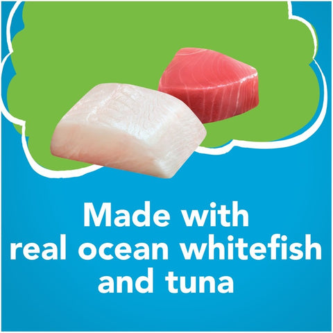 Satisfy your cat's cravings for tasty fish flavor with Purina Friskies Pate Ocean Whitefish & Tuna Dinner wet cat food. The mix of ocean whitefish and tuna delivers rich seafood flavor to her dish, and the smooth pate invites her to nibble away at the delectable goodness found in every serving. An enticing aroma leads your cat to her dish every time you fill her dish, letting her know something delicious is on its way. This wet cat food is ideal for multi-cat households, ensuring all your feline family gets the taste they love at mealtime. With 100% complete and balanced nutrition for adult cats and kittens, this recipe follows your cat through every stage of life. Let her belly up to her bowl and indulge in the yummy tastes that make this wet cat food a tempting meal option, and show your cat companion just how much she is loved and adored.
