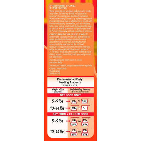 Make mealtime an adventure for your cat's palate when you offer up Purina Friskies Tender & Crunchy Combo dry cat food. The combination of crunchy and tender bites invites her to happily finish every last morsel, and the sensational flavor combination pleases her palate. The fun shapes give her a visual cue that delicious goodness is right around the corner, and the essential vitamins and minerals in every serving let you feel good about filling her dish. Make this recipe part of your cat's daily mealtime routine, and rotate between dry and wet foods by letting your cat explore our Purina Friskies Cat Concoctions wet cat foods to give her a delightful array of tempting flavor combinations. As a pet owner, you want to make sure your cat gets the nourishment she needs along with the tastes she loves. That's why we formulate this recipe to meet or exceed industry standards for cat food, and we make quality the number one ingredient in every wet and dry cat food we produce. This delicious wet cat food is proudly manufactured in our U.S. facilities, so you can rest easy knowing exactly where your cat's meals come from. Each batch undergoes rigorous quality and safety checks to provide you with added peace of mind every time you offer up a helping of this cat food, and we track every ingredient throughout each step in the production process to ensure your cat gets food that's safe, nutritious and tasty. Sustainability is a core concept at Purina, and we work towards our commitment to the environment by seeking out eco-friendly packaging options and responsibly sourced ingredients whenever possible. Fill her dish with Purina Friskies Tender & Crunchy Combo dry cat food, and show your cat just how much you love and adore her.