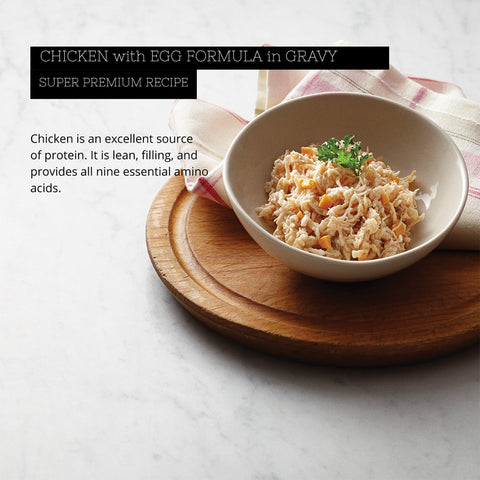 Quality Boneless Chicken with Eggs provides complete protein and essential amino acids in this deliciously nutritious meal. Our recipe is low in Sodium and high in Iron, while providing both Omega-3 and Omega-6 Fatty Acids, and a complete spectrum of vitamins and minerals.