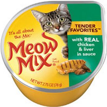 Now known as Meow Mix Tender Favorites, this terrific cat food is still great-tasting and jam-packed with the nutrition that your cat has always pounced upon. Meow Mix Tender Favorites Real Chicken and Liver in Gravy Cat Food Cup is just one of the many lip-smacking flavors that will have your cat dashing into the kitchen the second you open the can! Made with tender pieces of real chicken and liver mixed with a savory gravy, Meow Mix Tender Favorites Real Chicken and Liver in Gravy Cat Food Cup is an exceptional meal that your kitty will enjoy again and again!