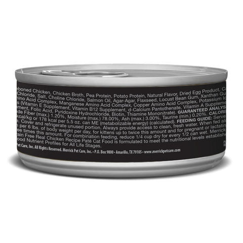 Merrick Backcountry is a natural, grain free ancestral feline diet packed with protein that cats crave. Wet recipes provide cats with complete and balanced nutrition and high levels of protein. The new, pate product form is offered in a variety of recipes such as chicken, salmon and kitten.