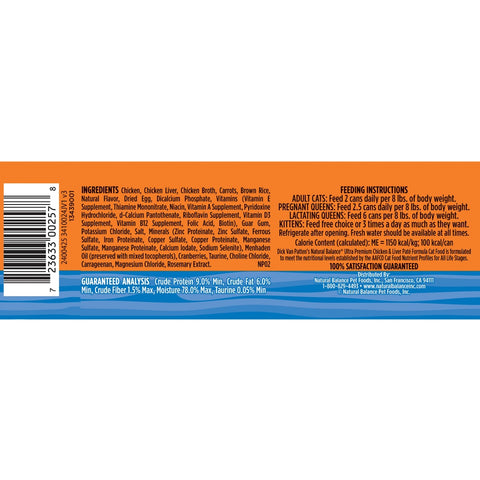 Natural Balance Chicken and Liver Pate Canned Cat Food provides complete and balanced nutrition for cat’s in all stages of life! Made with high quality protein for optimal muscle support as well as skin and coat support. Natural Balance Chicken and Liver Pate Canned Cat Food contains the necessary vitamins and minerals your cat needs making this food easily digestible AND highly irresistible for any fur baby!