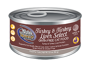 Offering a high quality, holistic recipe, NutriSource Grain Free Turkey & Turkey Liver Select Canned Cat Food is an easy to digest pate your cat is sure to love! This recipe also has added prebiotics and highly digestible minerals for immune and growth support. Nutrisource recipes always include their Good 4 Life system with ingredients that work together to promote gut health often showing health improvements within the first feeding!