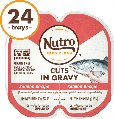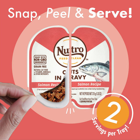 NUTRO PERFECT PORTIONS Adult Cat Food Trays allow you to feed your cat wet cat food without the mess of leftovers in your refrigerator. Made with real salmon as the first ingredient, this grain-free cat food contains no artificial flavors, colors or preservatives – only high-quality ingredients and nutrition in every serving. With NUTRO PERFECT PORTIONS Adult Cat Real Turkey Cuts In Gravy Recipe Cat Food Trays, your cat gets a fresh meal every time.