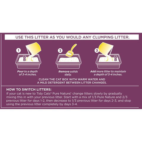 Keep your home smelling crisp and fresh when you use Purina Tidy Cats Pure Nature Cedar, Pine & Corn clumping litter for multiple cats. The 99.9% dust-free formula makes it easy to fill your cats' litter boxes without leaving a mess behind, helping to keep the area around each box tidy in between cleanings. Outstanding odor control works to neutralize strong scents, so your darling cats feel welcome to use their boxes without being overwhelmed. The naturally absorbent formula helps to keep your cats dry and content. Packaged in a resealable bag, this litter gives you a handy way to store your cats' litter neatly in your closet or pantry, and the conveniently recyclable packaging lets you feel good about the impact your pet purchases have on the world around you. Caring for multiple cats can be easy when you use this Tidy Cats multiple cat formula. This clumping kitty litter is formulated for your multi-cat household, working to keep strong odors at bay. The naturally clumping design allows for effortless cleanup, and the natural scents make the litter box areas pleasant for your favorite felines. Crafted from cedar, pine and corn, this cat-friendly litter offers a natural way to tend to your cat's needs. Pair this litter with our Tidy Cats litter deodorizer to bring even more freshness to your home, and use our Tidy Cats box liners to switch out batches of litter quickly. If you are switching to Purina Tidy Cats Pure Nature Cedar, Pine & Corn clumping litter, gradually introduce this formula to each cat's litter box so they can become used to the new scent and texture. By the time each box is filled with our natural, cat-friendly litter option, they can enjoy the fresh scent and powerful odor control in a cat litter formula that's healthy for your home.