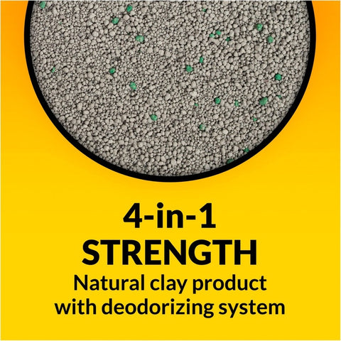 Fight strong odors with Purina Tidy Cats 4-in-1 Strength clumping litter, and give your cats a reason to happily use their litter boxes whenever they need. The quadruple protection found in this litter defends your home against odors, keeping your home smelling crisp and clean. The simple form allows for effortless changing of litter as needed, and the single-handle jug makes this litter easy to store, pour and carry. Designed to be virtually dust-free, this litter keeps messes to a minimum when you change out your cats' litter. Give your cats the odor protection they deserve and spend less time cleaning out their litter boxes with this powerful litter for cats. When unpleasant odors and messy, weak clumps begin to take hold, it's time to put them in their place with Purina Tidy Cats 4-in-1 Strength clumping litter. As a busy pet parent, you want a low-maintenance, effective litter solution that leaves your home smelling great. With this Tidy Cats litter, you get all that plus a formula that is specially formulated for your multiple-cat household. We recommend removing solid waste every day and cleaning each litter box with warm water and a mild detergent between litter changes. Keep a supply of this Tidy Cats litter in your closet or pantry for whenever your cats' boxes need to be freshened up, and pour 3 to 4 inches of litter in each box so your cats can happily paw their way through their litter areas. For even more ways to fight tough odors, look to our complete line of Tidy Cats litter solutions. Our Tidy Cats litter box deodorizer adds a fresh herbal, flowery scent to your home while fending off unpleasant smells. To make litter box cleaning easy, use our tear-resistant Tidy Cats box liners, which let you bag and dispose of old litter quickly and easily. With so many different litter solutions to choose from, there's sure to be an option that you and your cats will appreciate.