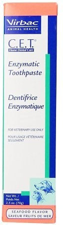 Designed for dogs and cats that rapidly form plaque and tartar on their teeth. This specially designed toothpaste contains an enhanced C.E.T. Dual-Enzyme formula and is more abrasive than regular toothpastes. Also acts quickly to neutralize mouth odors. Available in great-tasting beef and seafood flavors.