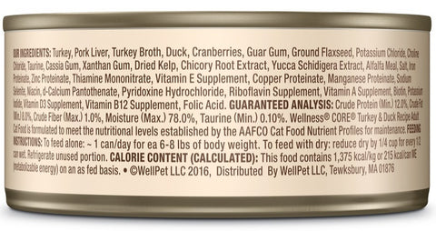 Wellness CORE Natural Grain Free Turkey and Duck Pate Wet Canned Cat Food