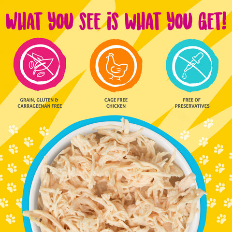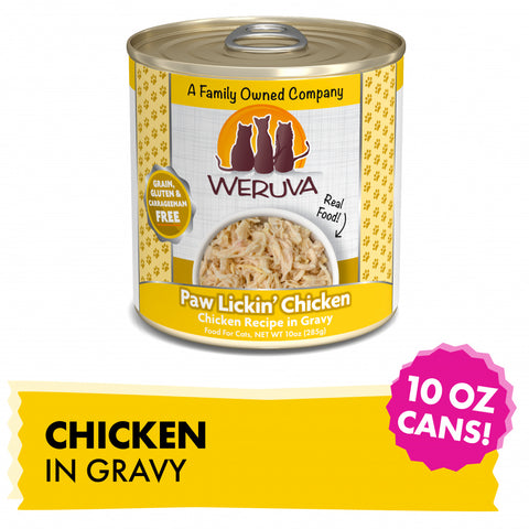 Simple, delicious, and paw lickin' good. No vegetables, grains, GMOs, MSG, and carrageenan, your little carnivore will be lickin it's paws once it gets a taste of the Weruva Paw Lickin' Chicken Canned Cat Food. Weruva's Paw Lickin' Chicken Canned Cat Food is full of whole, boneless, skinless, and cage-free chicken breast, free of hormones, and added antibiotics for a happy and healthy kitty. This simple meal is an easily identifiable food as the only protein provided is the delicious shredded chicken.