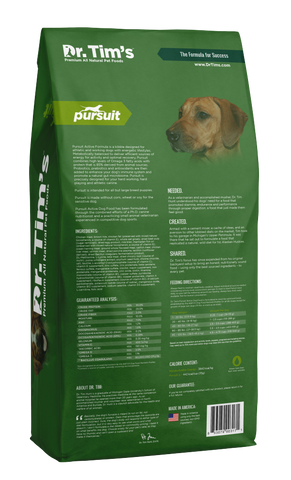 Pursuit Active Dog Food has been formulated through the combined efforts of a Ph.D. canine nutritionist and a practicing small animal veterinarian experienced in competitive dog sports.
