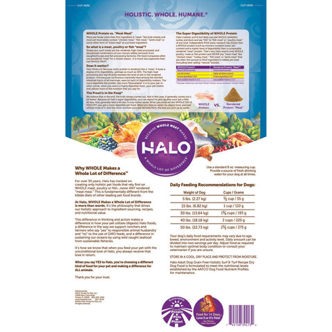 Halo Adult Grain Free Holistic Surf & Turf Recipe Dry Dog Food