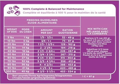 Whether you're looking for an advanced nutrition formula for your mature adult dog or simply want to give them a great-tasting kibble, IAMS PROACTIVE HEALTH Mature Adult Dry Dog Food offers the delicious flavors your dog loves and the health benefits they deserve. Our hearty dog food is made with high-quality animal proteins, such as real chicken. Our mature adult dog formula also helps promote lean muscles while our rich blend of antioxidants supports a strong immune system and healthy digestion. Plus, IAMS PROACTIVE HEALTH Dry Dog Food features naturally sourced glucosamine and chondroitin sulfate to support healthy joints and mobility. Your dog will not only feel the benefits of our most advanced dry dog food, but you also will notice healthier-looking skin and less tartar buildup. Best of all, our wholesome PROACTIVE HEALTH Food for Dogs is made using no added fillers, artificial colors, flavors or preservatives. Premium nutrition never tasted so good!