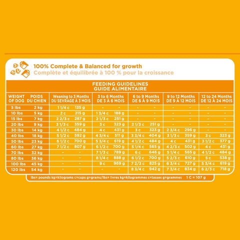 Your large breed puppy has special nutritional needs for growth and play. That's why the IAMS Brand created a premium nutrition formula just for large breed puppies 1-24 months old. IAMS PROACTIVE HEALTH Smart Puppy Large Breed Dry Puppy Food is formulated with omega-3 DHA to support healthy brain and vision development, plus calcium for joint health. Your puppy will look forward to our hearty dog food with savory poultry flavors, and you will like that real chicken is the first ingredient, which helps to build lean muscles. Best of all, our wholesome dry puppy food is enriched with essential minerals to help build strong bones and with antioxidants to support a healthy immune system. You can feel confident that you puppy's new favorite kibble offers 100% complete and balanced nutrition for growth without using fillers. Help your large breed puppy get started on the right paw with IAMS PROACTIVE HEALTH Dry Puppy Food.