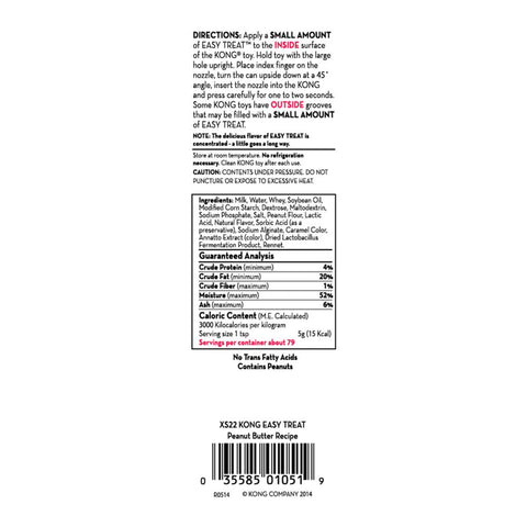 KONG Peanut Butter Easy Treat makes KONG stuffing easy. Simply apply the tasty paste to the inside of a KONG toy or grooves of a KONG Dental toy. Easy to dispense