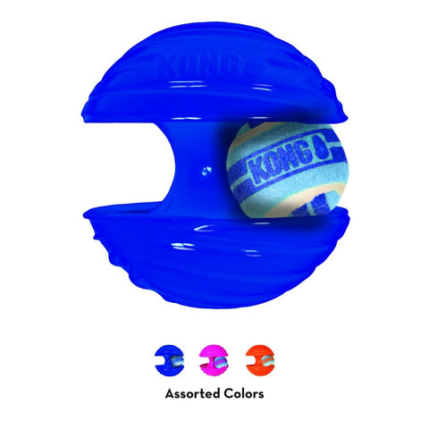 KONG Rambler delivers an exciting new puzzle game challenge that combines two toys into one for irresistible fun. The unpredictable movement and big squeak of the outer ball shell entices dogs while the entertaining tennis ball track creates an action packed and interactive play session.
