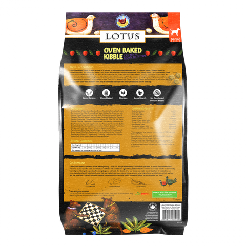 All of Lotus' wholesome, balanced nutrition plus extras for the joint health of your senior dog like New Zealand green mussel, glucosomine, and Chondroitin help him act like a puppy again (minus the whole potty-training thing).