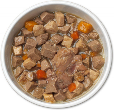 Fuel your dog's active lifestyle with the wholesome nourishment in every can of Merrick Backcountry Grain Free Wet Dog Food Hearty Chicken Thigh Stew. Real deboned chicken is always the first ingredient in this adult dog food that also contains real, whole vegetables and a savory gravy that adds extra flavor and moisture to mealtime. The chicken dog food recipe's high-quality protein helps build and maintain healthy muscle tissue and energy levels in your dog. Added vitamins and minerals help this natural dog food support overall health and ensure adult dogs of all breeds and receive the complete and balanced nutrition they need. Serve this moist dog food as a satisfying standalone meal, or use it as a topper to make your dog's dry kibble even more appealing. Like all Merrick recipes, this Backcountry Grain Free Hearty Chicken Thigh Stew was crafted in our Hereford, TX kitchen and cooked in the USA.