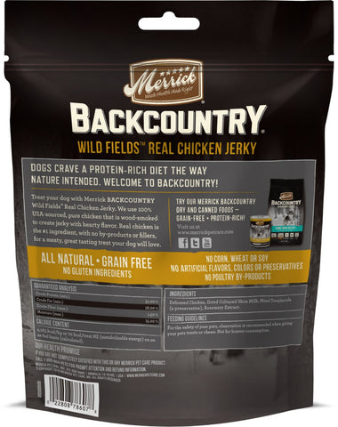 Merrick Backcountry Jerky Treats are hearty jerky strips with a wood-smoked taste dogs go wild for, the treats are grain-free with no gluten ingredients; start with real poultry or fish as the first ingredient.