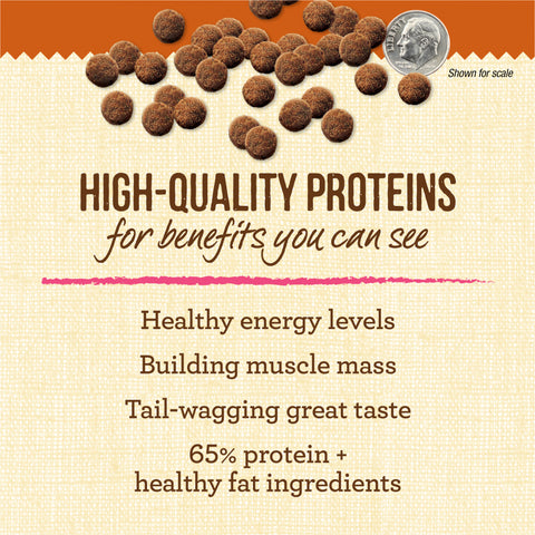 Merrick Lil' Plates Small Breed Grain-Free Real Beef and Sweet Potato Dry Dog Food provides nutrition suited for your small breed pup with real foods sourced from local farmers. 55% of Lil' Plates is composed of meat and healthy fat ingredients that help build and maintain lean, healthy muscle tissue with high quality protein starting with deboned beef. The remaining 45% is made up of fresh produce including easy to digest carbohydrates like potatoes and sweet potatoes which provide sustained energy without upsetting grain-sensitive systems. Merrick Lil' Plates also includes omega fatty acids to promote healthy skin and coat as well as glucosamine to support joint health