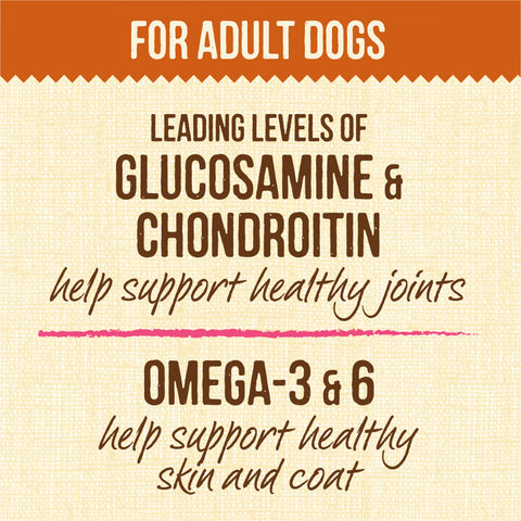 - Grain free with omegas for a heathy skin and coat as well as glucosamine to support joint health