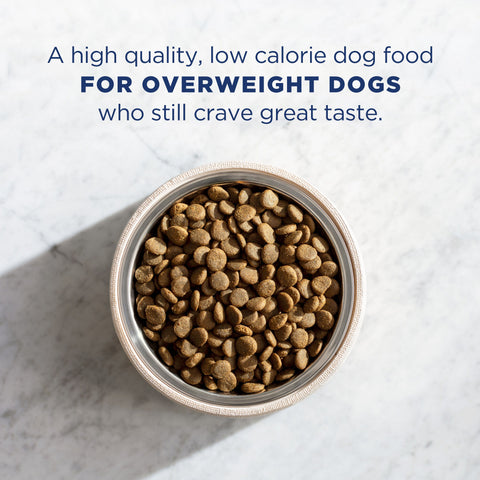 - A tasty low calorie formula that can help overweight dogs achieve healthy weight.