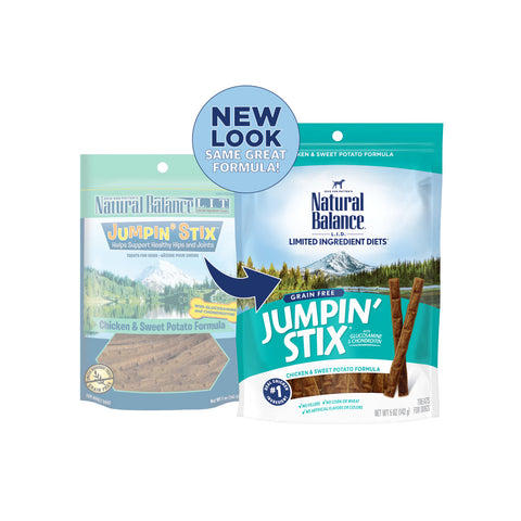 Your dog will jump for joy for the delicious taste that helps him stay active and happy! Natural Balance® Jumpin' Stix™ are made with high quality proteins and are formulated with glucosamine and chondroitin so they help support healthy hips & joints. Whether hidden in a toy or just for sharing a quick moment, these treats are the perfect way to share a smile.