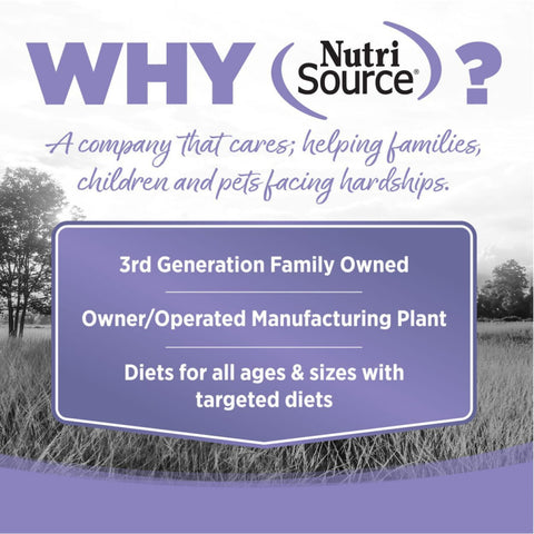 Nutrisource pet food has created the highest-quality food for your beloved pets. Nutrisource is formulated with the best ingredients and supplements that guarantee whole body health. Priority number 1 is to deliver the safest, most nutritious foods possible by examining all raw ingredients and testing every product during and after cooking. A deep rooted sense of family, community and integrity guides every decision, from the top to the bottom. With options for every dog and cat, such as large breed, small breed, seafood, beef, chicken, wet, dry, grain-free, and more, you'll know your pet is getting the very best with Nutrisource.