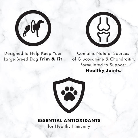 - Farm raised chicken is the first ingredient, high in protein for large breed dogs
