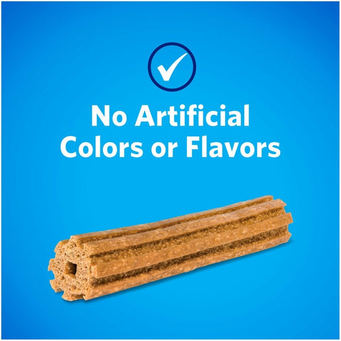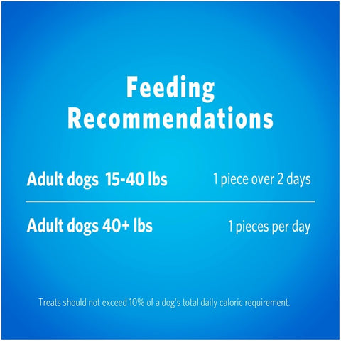 Taking care of your dog's dental needs includes providing for his daily oral care, and Purina DentaLife Daily Oral Care large adult dog treats help you keep your large dog's teeth clean and his breath fresh. We craft this DentaLife recipe without artificial flavors or colors, so your dog gets wholesome ingredients in a chewy treat designed to deliver a breakthrough clean. These adult dog treats are packaged in a convenient resealable pouch, helping to preserve freshness so that each treat is ready whenever your dog is. Our satisfaction guarantee (see package for details) provides extra reassurance every time you reach for one of these VOHC Accepted adult dog treats. Follow the provided feeding instructions based on your dog's size, and offer him these tasty chicken-flavored snacks in addition to his complete and balanced diet and brushing to help him maintain a smile he can be proud of. For households with multiple dogs both big and small, explore our complete line of Purina DentaLife adult dog treats to find the right size for each of your family's faithful friends. At Purina, we know quality is important to dog owners, and that's why we strive to make quality the top priority in everything we do. These adult dog treats are crafted at our facility in Dunkirk, New York, so you know where his snacks are made, and each batch undergoes checks for safety and quality, giving you added peace of mind every time you reach for a pouch. Rest assured knowing that the science behind these treats is backed by the over 90 years of research and commitment that Purina brings to helping make pets' lives better. For clean teeth throughout a long, healthy life together, choose Purina DentaLife Daily Oral Care large adult dog treats for your large-sized dog.