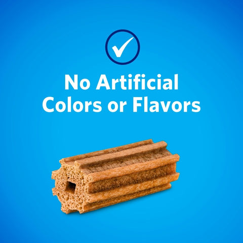 Taking care of your dog's dental needs includes providing for his daily oral care, and Purina DentaLife Daily Oral Care mini adult dog treats help keep his teeth clean and his breath fresh. We craft this DentaLife recipe without artificial flavors or colors, so your dog gets wholesome ingredients in a chewy treat designed to deliver a breakthrough clean. These adult dog treats are packaged in a convenient resealable pouch, helping to preserve freshness so that each treat is ready whenever your dog is. Our satisfaction guarantee (see package for details) provides extra reassurance every time you reach for one of these VOHC Accepted adult dog treats. Follow the provided feeding instructions based on your dog's size, and offer these tasty chicken-flavored snacks in addition to his complete and balanced diet to help him maintain a bright, clean smile you can both be proud of. For households with multiple dogs both big and small, explore our complete line of Purina DentaLife adult dog treats to find the right size for each of your family's faithful friends. At Purina, we know quality is important to dog owners, and that's why we strive to make quality the top priority in everything we do. These adult dog treats are crafted at our facility in Dunkirk, New York, so you know where his snacks are made, and each batch undergoes checks for safety and quality, giving you added peace of mind every time you reach for a pouch. Rest assured knowing that the science behind these treats is backed by the over 90 years of research and commitment that Purina brings to helping make pets' lives better. For clean teeth throughout a long, healthy life together, choose Purina DentaLife Daily Oral Care mini adult dog treats for your mini-sized dog.