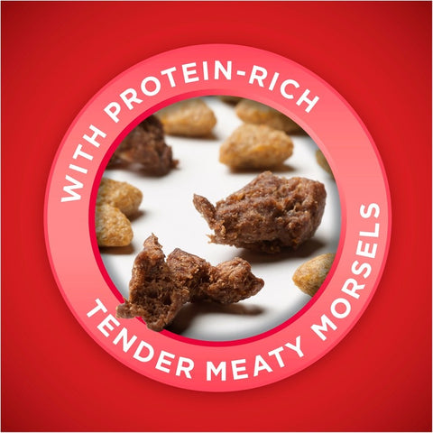 Beef (Source Of Glucosamine), Rice Flour, Corn Gluten Meal, Whole Grain Corn, Chicken By-Product Meal (Source Of Glucosamine), Beef Fat Naturally Preserved With Mixed-Tocopherols, Soybean Meal, Oat Meal, Whole Grain Wheat, Liver Flavor, Glycerin, Mono And Dicalcium Phosphate, Calcium Carbonate, Salt, Caramel Color, Potassium Chloride, Soybean Oil, Dried Carrots, Dried Peas, Vitamins [Vitamin E Supplement, Niacin (Vitamin B-3), Vitamin A Supplement, Calcium Pantothenate (Vitamin B-5), Thiamine Mononitrate (Vitamin B-1), Vitamin B-12 Supplement, Riboflavin Supplement (Vitamin B-2), Pyridoxine Hydrochloride (Vitamin B-6), Folic Acid (Vitamin B-9), Menadione Sodium Bisulfite Complex (Vitamin K), Vitamin D-3 Supplement, Biotin (Vitamin B-7)], Minerals [Zinc Sulfate, Ferrous Sulfate, Manganese Sulfate, Copper Sulfate, Calcium Iodate, Sodium Selenite], Choline Chloride, L-Lysine Monohydrochloride, Sulfur.