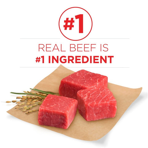 Deliver a delightful taste and texture combo to your dog's dish with Purina ONE SmartBlend Natural Small Bites Beef & Rice Formula adult dry dog food. The small, easy-to-eat, crunchy bites and tender morsels give him a taste dogs love, and real beef as the number one ingredient lets you feel good about the dog food you serve to your faithful friend. This skin and coat formula is highly-digestible, so more nutrition goes to work inside your dog, and it includes zero fillers, so every high-quality ingredient has a purpose. Each serving is packed with protein to help support strong muscles, including a healthy heart, and natural sources of glucosamine support his joint health so that he can maintain his active lifestyle. Give your dog lifelong smart nutrition when you fill his dish with this Purina ONE SmartBlend dry dog food recipe and watch as he savors every delicious bite.