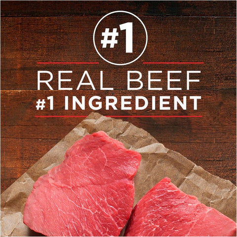Deliver classic flavor to your dog's dish with Purina ONE SmartBlend Natural Classic Ground Beef & Brown Rice Entree adult wet dog food. Real beef lets you feel good about serving this recipe at mealtime, and the classic ground formula delivers a tempting taste and texture combination he can't resist. This formula is highly digestible, so more nutrition goes to work inside your dog's body, and 0% fillers and no poultry by-products mean that every high-quality ingredient in this recipe has a purpose. With high protein in every serving, this wet dog food helps to support your dog's strong muscles so he can maintain his active lifestyle, and natural sources of glucosamine support healthy joints. Give your dog the 100% complete and balanced nutrition he needs to maintain his lifelong whole-body health when you fill his dish with this delectable canned dog food recipe, and rest easy knowing he's getting a quality meal backed by a trusted brand.