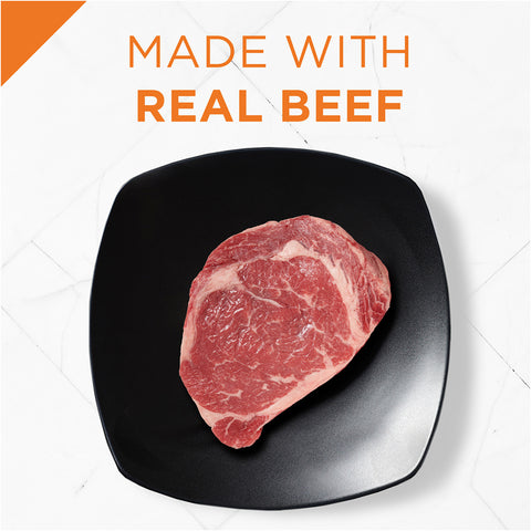 Classic wet formula made with beef as the first ingredient. High in protein to maintain lean muscle. Proudly manufactured at Purina owned US facilities with no artificial colors, flavors or preservatives.