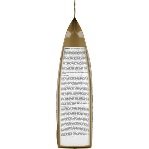 Chicken by-product meal, chicken fat, brown rice, corn, brewers rice, wheat gluten, wheat, corn gluten meal, natural flavors, fish oil, dried plain beet pulp, vegetable oil, sodium silico aluminate, powdered cellulose, calcium carbonate, potassium chloride, L-tyrosine, vitamins [DL-alpha tocopherol acetate (source of vitamin E), niacin supplement, L-ascorbyl-2-polyphosphate (source of vitamin C), D-calcium pantothenate, biotin, pyridoxine hydrochloride (vitamin B6), riboflavin supplement, thiamine mononitrate (vitamin B1), vitamin A acetate, folic acid, vitamin B12 supplement, vitamin D3 supplement], sodium tripolyphosphate, potassium citrate, hydrolyzed yeast, choline chloride, taurine, glucosamine hydrochloride, salt, L-carnitine, DL-methionine, trace minerals [zinc proteinate, zinc oxide, manganese proteinate, ferrous sulfate, manganous oxide, copper sulfate, calcium iodate, sodium selenite, copper proteinate], marigold extract (Tagetes erecta L.), L-lysine, magnesium oxide, green tea extract, chondroitin sulfate, rosemary extract, preserved with mixed tocopherols and citric acid.Guaranteed Analysis