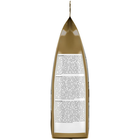 Brewers rice, brown rice, chicken by-product meal, chicken fat, oat groats, wheat gluten, natural flavors, dried plain beet pulp, powdered cellulose, fish oil, vegetable oil, sodium silico aluminate, calcium carbonate, potassium chloride, DL-methionine, fructooligosaccharides, sodium tripolyphosphate, vitamins [DL-alpha tocopherol acetate (source of vitamin E), niacin supplement, L-ascorbyl-2-polyphosphate (source of vitamin C), D-calcium pantothenate, biotin, pyridoxine hydrochloride (vitamin B6), riboflavin supplement, thiamine mononitrate (vitamin B1), vitamin A acetate, folic acid, vitamin B12 supplement, vitamin D3 supplement], L-tyrosine, choline chloride, salt, L-lysine, marigold extract (Tagetes erecta L.), trace minerals [zinc proteinate, zinc oxide, ferrous sulfate, manganese proteinate, manganous oxide, copper sulfate, calcium iodate, sodium selenite, copper proteinate], glucosamine hydrochloride, GLA safflower oil, taurine, magnesium oxide, green tea extract, L-carnitine, chondroitin sulfate, rosemary extract, preserved with mixed tocopherols and citric acid.