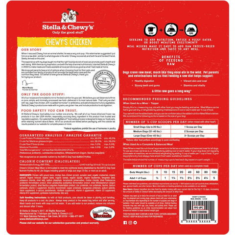 • Made in the USA - Chewy's Chicken Meal Mixers’ all-natural recipe is crafted with care in small batches in Stella & Chewy’s own USA kitchen to provide the highest levels of protein-rich meat and quality grain-free nutrition for your pet