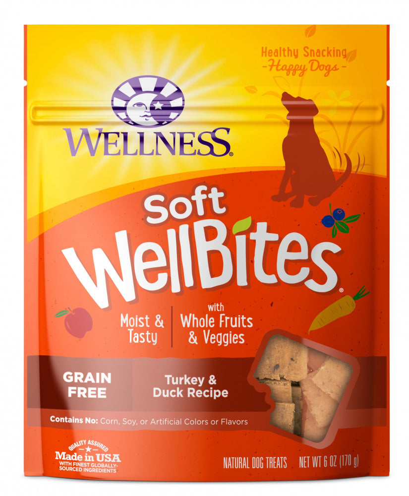 Wellness Natural Grain Free WellBites Soft Dog Treats are wholesome, all natural, soft, tasty, bite-sized dog treats made in USA only