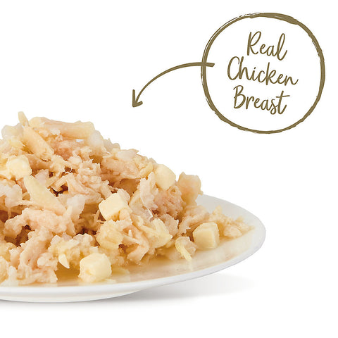 Applaws Chicken Breast with Cheese Canned Cat Food contains nothing more than the ingredients listed and is a natural complementary pet food for adult cats.