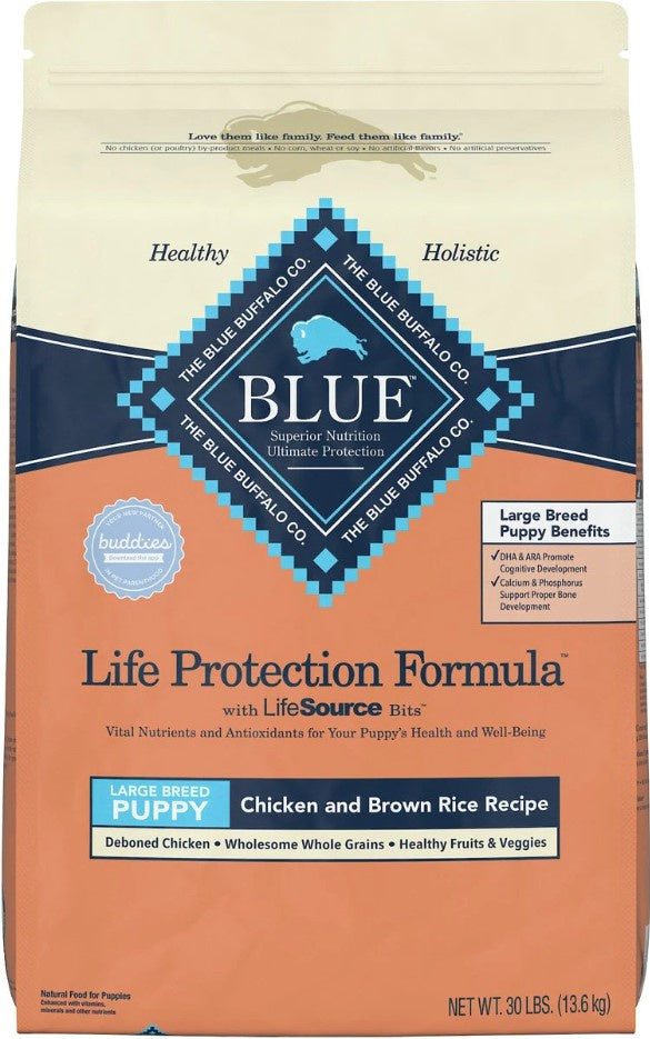 Because puppyhood is such an important stage in any dog’s life, BLUE Life Protection Formula Puppy Large Breed Dry Dog Food features ingredients that support the healthy growth and development of large-breed puppies. It contains the ingredients you’ll love feeding as much as they’ll love eating.