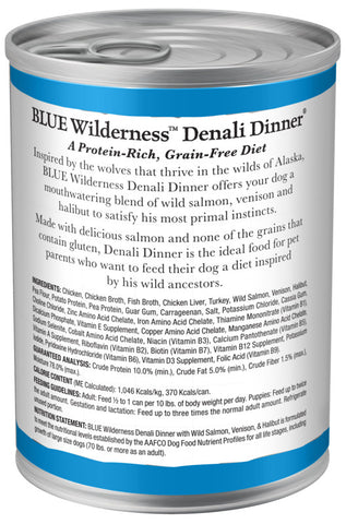 Inspired by the rugged wilds of Alaska, BLUE Wilderness Denali Dinner wet dog food is made to feed your dog’s most primal instincts. With a blend of wild salmon, venison and halibut, plus fruits and vegetables, this grain free recipe is made with the finest natural ingredients enhanced with vitamins and minerals.