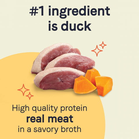 The perfect meal for your tiny friend, Canidae Grain Free PURE Petite Small Breed Pottage Style Dinner Minced with Duck and Pumpkin in Broth Wet Dog Food is the perfect portion with perfect nutrition for smaller pups! This grain free, limited ingredient pate is made without corn, wheat, or soy in a single serving size! Ideal for finicky eaters or those with allergies and sensitivities, Canidae Grain Free PURE Petite Small Breed Pottage Style Dinner Minced with Duck and Pumpkin in Broth Wet Dog Food provides optimal nutrition with minimal ingredients!