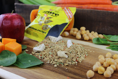 USDA Chicken, Chickpeas, Flax, Carrots, Celery, Apples, Bananas, Blueberries, Cranberries, Pumpkin, Papaya, Spinach, Garlic, Rosemary, Vitamin A, Vitamin D3, Vitamin E, Niacin, Iron, Calcium, Phosphorus, Zinc, Riboflavin, Thiamin, Potassium, Manganese, Chloride, Copper, Magnesium, Pyridoxine, Cyanocobalamin
