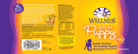 In order to reach their adult size, puppies undergo very rapid growth during their first year. With such rapid growth comes certain risks, like the skeletal system outgrowing the muscular system. To make sure that your gets the nutrition they need it's good to stick with a puppy specific recipe. Wellness Complete Health Natural Just for Puppy Chicken and Salmon Recipe Wet Canned Dog Food gives your puppy all the nutrients they need as well as having is chicken and salmon based to aid in digestion and bone health. This recipe also includes carrots, sweet potatoes, apples and pears that help create natural antioxidants for puppy’s well-being.