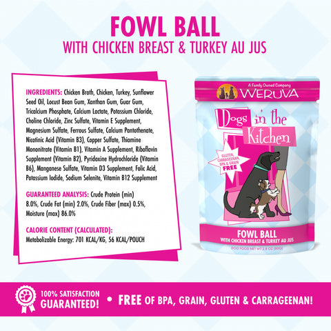 Weruva Dogs in the Kitchen Fowl Ball Grain Free Chicken & Turkey Dog Food Pouch