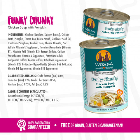 Chicken (Boneless, Skinless Breast), Chicken Broth, Pumpkin, Carrot, Pea, Potato Starch, Sunflower Seed Oil, Tricalcium Phosphate, Xanthan Gum, Choline Chloride, Zinc Sulfate, Vitamin E Supplement, Thiamine Mononitrate (Vitamin B1), Nicotinic Acid (Vitamin B3), Ferrous Sulfate, Calcium Pantothenate, Vitamin A Supplement, Potassium Iodide, Manganese Sulfate, Copper Sulfate, Riboflavin Supplement (Vitamin B2), Pyridoxine Hydrochloride (Vitamin B6), Folic Acid, Vitamin D3 Supplement, Vitamin B12 SupplementGuaranteed Analysis